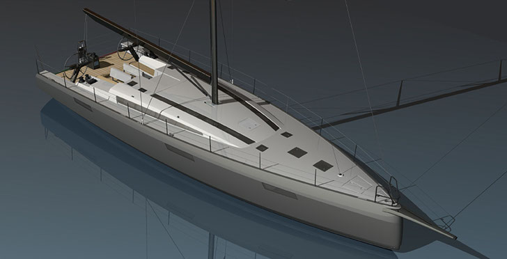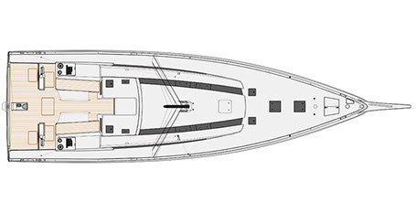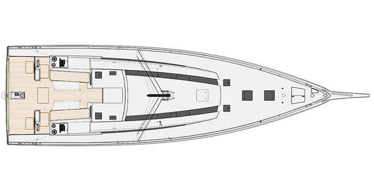 - Accès au-dessus du pont par un grand panneau de pont en carbone, verrouillable et encastré.