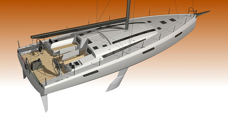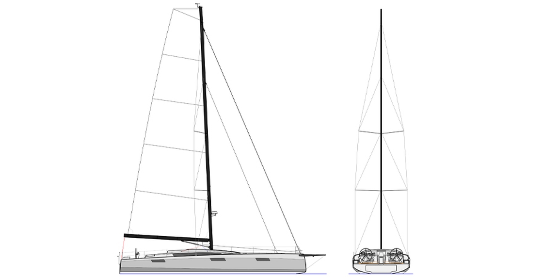 - Voile de quille en carbone, avec bulbe en plomb. Par conséquent, le centre de gravité est très bas, la stabilité élevée (= moment de redressement élevé) et les performances élevées.
