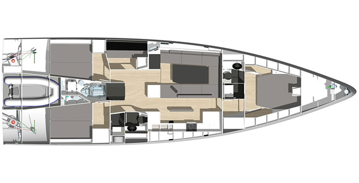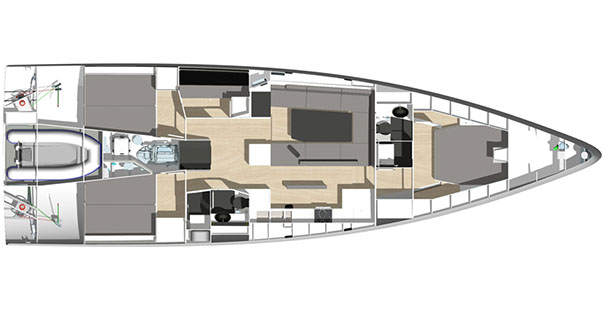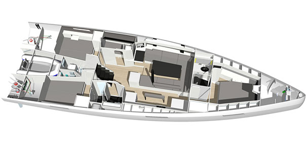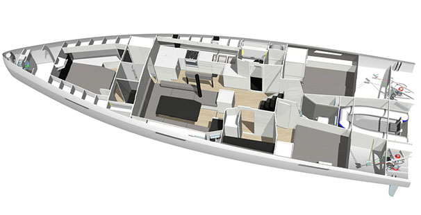 - Grande soute à voiles avec coffre à chaîne dans le pic avant, conçu comme une cloison étanche.