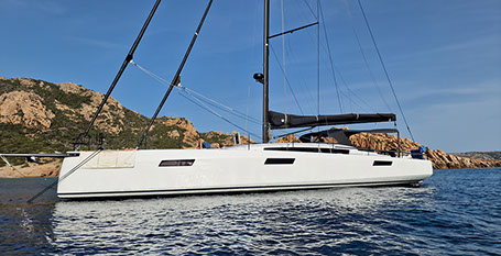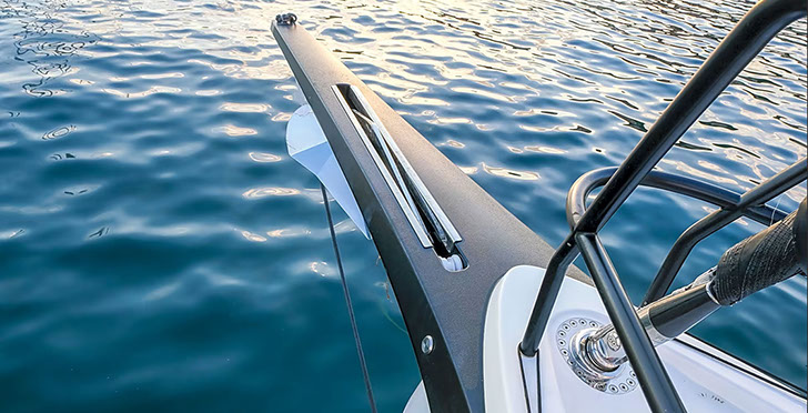 - Bôme de grand-voile en carbone avec des outriggers en carbone et un vit-de-mulet positionné très bas. Cela permet de ranger la grand-voile confortablement et en toute sécurité - debout sur le pont.